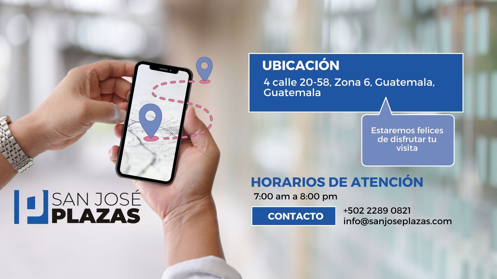 San José Plazas se caracteriza por ofrecer a tus visitantes e inquilinos una buena experiencia comercial y alternativas recreaciones con actividades periódicas para toda la familia guatemalteca.